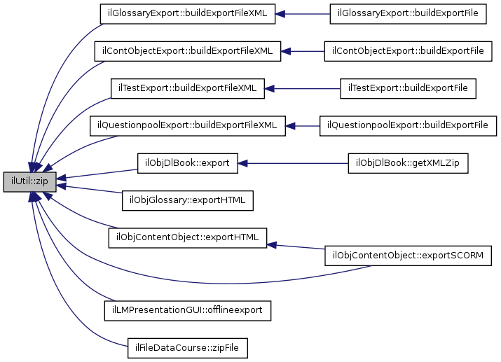Referenced by ilGlossaryExport::buildExportFileXML(), ilContObjectExport::buildExportFileXML(), ilTestExport::buildExportFileXML(), ilQuestionpoolExport::buildExportFileXML(), ilObjDlBook::export(), ilObjGlossary::exportHTML(), ilObjContentObject::exportHTML(), ilObjContentObject::exportSCORM(), ilLMPresentationGUI::offlineexport(), and ilFileDataCourse::zipFile().