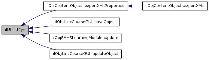 Here is the caller graph for this function:| ilUtil::yn2tf | ( | $ | a_yn | ) |