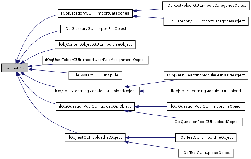Referenced by ilObjCategoryGUI::_importCategories(), ilObjGlossaryGUI::importFileObject(), ilObjContentObjectGUI::importFileObject(), ilObjUserFolderGUI::importUserRoleAssignmentObject(), ilFileSystemGUI::unzipFile(), ilObjSAHSLearningModuleGUI::uploadObject(), ilObjQuestionPoolGUI::uploadQplObject(), and ilObjTestGUI::uploadTstObject().