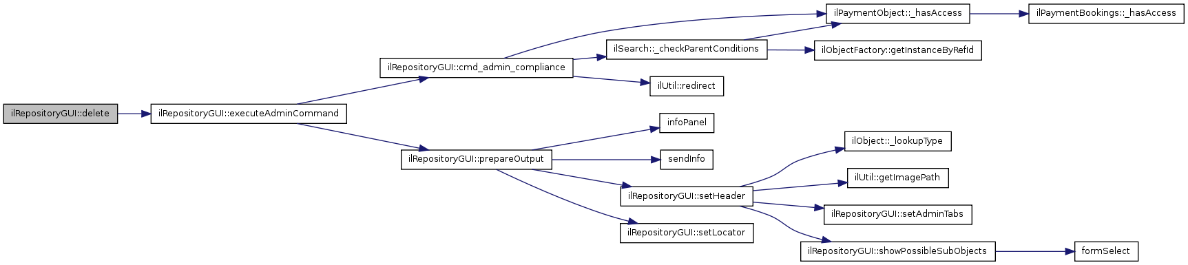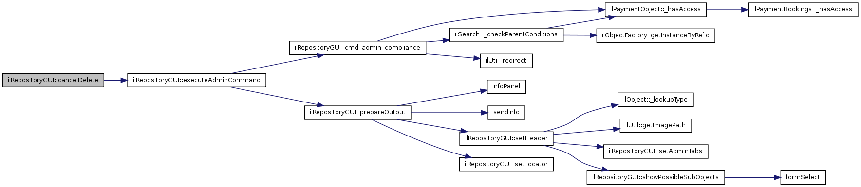 Here is the call graph for this function:| ilRepositoryGUI::cancelDelete | ( | ) |