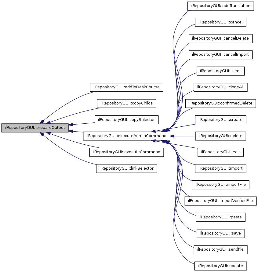 Here is the call graph for this function:| ilRepositoryGUI::$cmd |