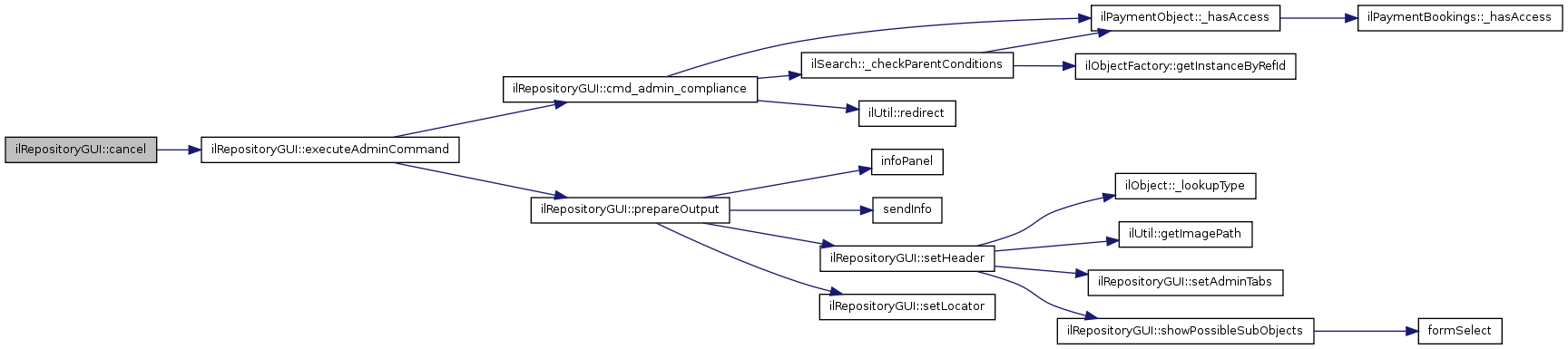 Here is the call graph for this function:| ilRepositoryGUI::cancel | ( | ) |