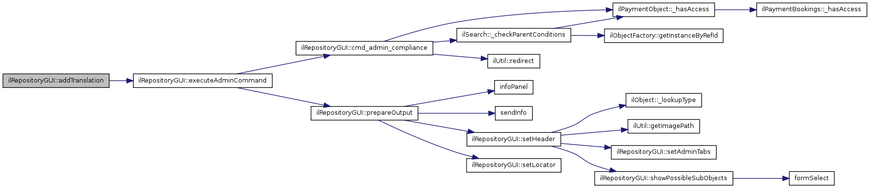 Here is the call graph for this function:| ilRepositoryGUI::addTranslation | ( | ) |