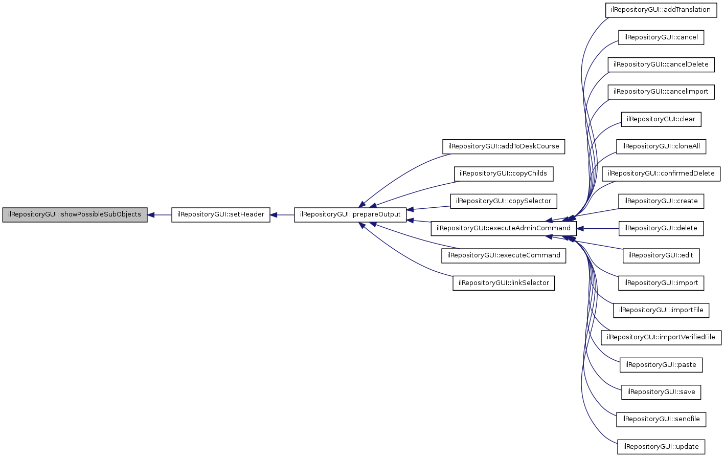 Here is the call graph for this function:| ilRepositoryGUI::showPossibleSubObjects | ( | $ | type | ) |