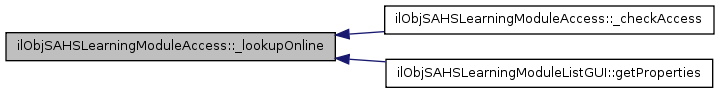 Here is the caller graph for this function:| ilObjSAHSLearningModuleAccess::_lookupOnline | ( | $ | a_id | ) |