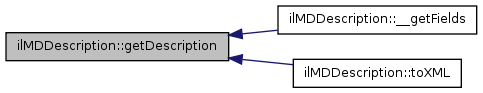 Here is the call graph for this function:| ilMDDescription::getDescription | ( | ) |