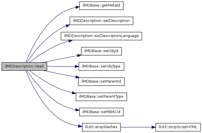 Here is the call graph for this function:| ilMDDescription::read | ( | ) |
