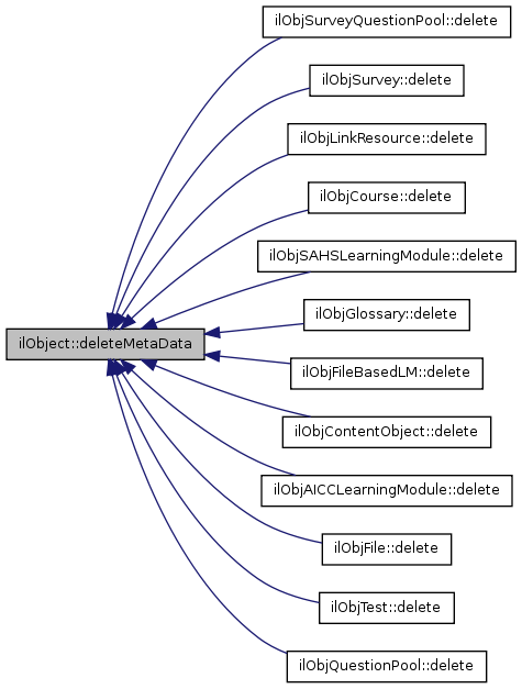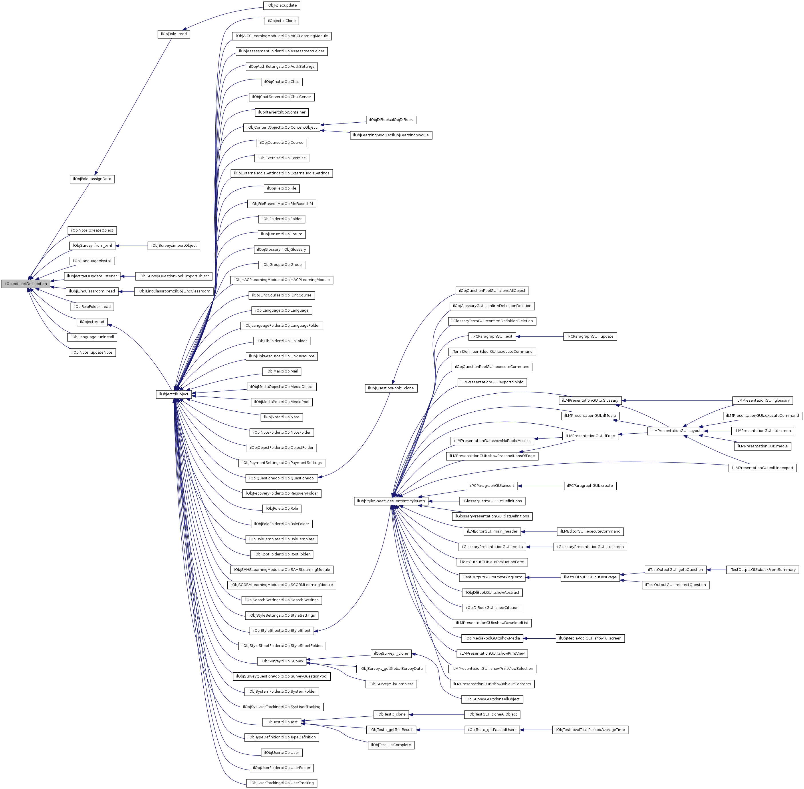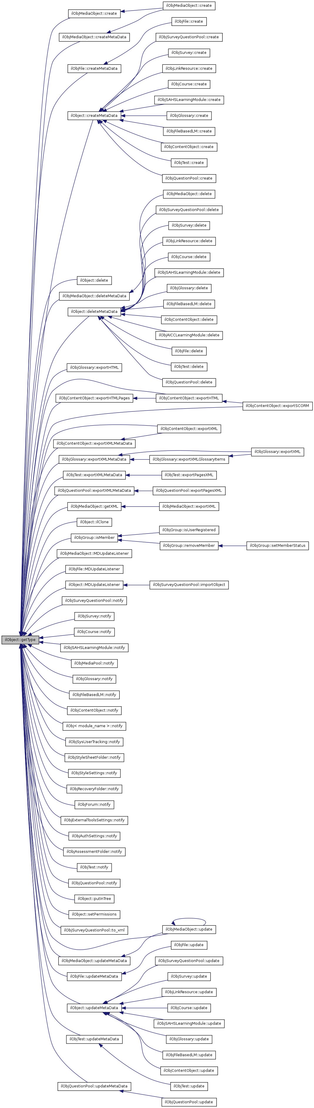 Reimplemented in ilObjQuestionPool, ilObjTest, ilObjAssessmentFolder, ilObjAuthSettings, ilObjExercise, ilObjExternalToolsSettings, ilObjFile, ilObjForum, ilObjMediaObject, ilObjRecoveryFolder, ilObjRole, ilObjStyleSettings, ilObjStyleSheet, ilObjStyleSheetFolder, ilObjSysUserTracking, ilObjUser, ilObj< module_name >, ilObjContentObject, ilObjFileBasedLM, ilObjGlossary, ilObjMediaPool, ilObjSAHSLearningModule, ilObjMediaObject, ilObjCourse, ilObjiLincClassroom, ilObjiLincCourse, ilObjLinkResource, ilObjPaymentSettings, ilObjSearchSettings, ilObjSurvey, and ilObjSurveyQuestionPool.