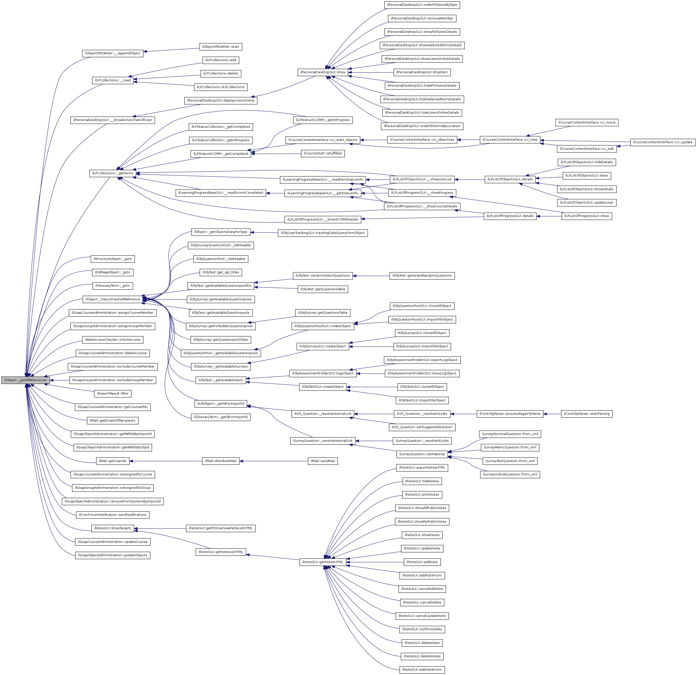 Referenced by ilObjUserTracking::allAuthor(), ilObjSysUserTracking::allAuthor(), ilObjUserTracking::authorLms(), ilObjSysUserTracking::authorLms(), ilObjUserFolder::createXMLExport(), ilObjMediaPool::deleteChild(), ilObjGlossary::getExportFiles(), ilObjContentObject::getExportFiles(), ilObjUserTracking::getObjId(), ilObjSysUserTracking::getObjId(), and ilObjTest::setTestType().