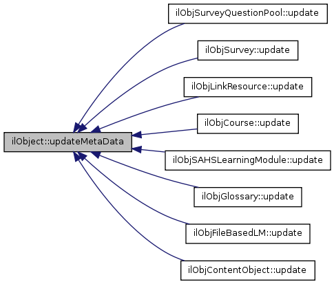 Here is the caller graph for this function:| ilObject::updateMetaData | ( | ) |