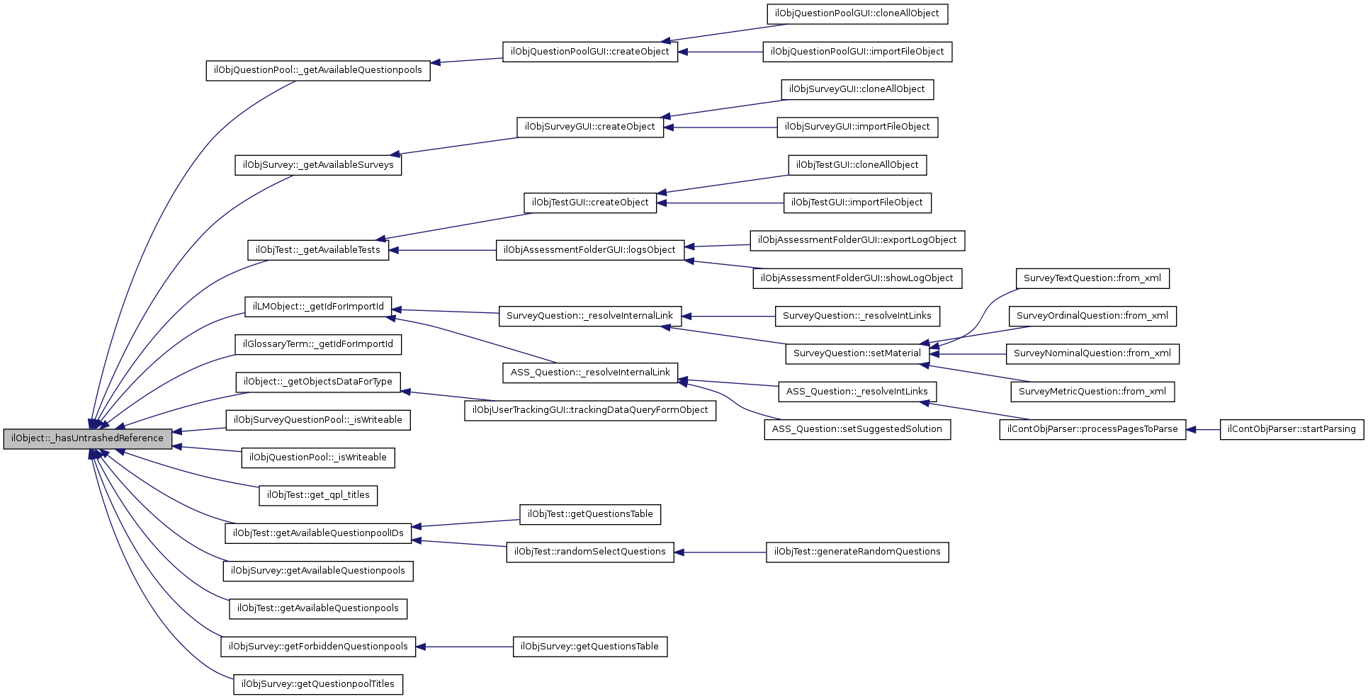 Referenced by ilObjUserTracking::__readSettings(), ilObjCourse::_checkCondition(), ilObjExercise::_checkCondition(), ilObjContentObject::_checkPreconditionsOfPage(), ilObjTest::_createImportDirectory(), ilObjQuestionPool::_createImportDirectory(), ilObjAssessmentFolder::_enableAssessmentLogging(), ilObjAssessmentFolder::_enabledAssessmentLogging(), ilObjUserTracking::_enabledLearningProgress(), ilObjUserTracking::_enabledTracking(), ilObjSysUserTracking::_enabledTracking(), ilObjUserTracking::_enabledUserRelatedData(), ilObjSysUserTracking::_enabledUserRelatedData(), _exists(), ilObjAssessmentFolder::_getLogLanguage(), ilObjUserTracking::_getValidTimeSpan(), ilObjiLincCourse::_isActivated(), ilObjAssessmentFolder::_setLogLanguage(), ilObjForum::_updateOldAccess(), ilObjUserFolder::buildExportFile(), ilObjTest::createImportDirectory(), ilObjSysUserTracking::enableTracking(), ilObjSysUserTracking::enableUserRelatedData(), ilObjGlossary::exportHTML(), ilObjContentObject::exportHTML(), ilObjContentObject::exportPageHTML(), ilObjStyleSheet::getContentStylePath(), ilObjFile::getXMLZip(), ilObject(), ilObjForum::ilObjForum(), ilObjiLincClassroom::ilObjiLincClassroom(), ilObjTest::saveCompleteStatus(), ilObjTest::saveToDb(), and ilObjUserTracking::updateSettings().