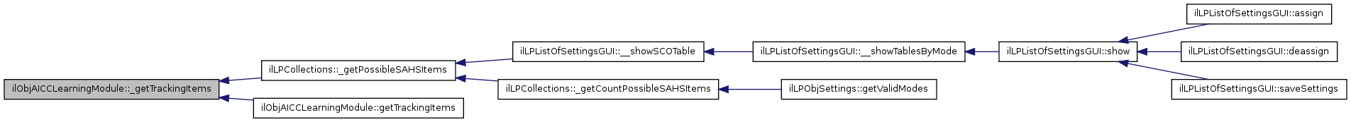 Here is the call graph for this function:| ilObjAICCLearningModule::getTrackedItems | ( | ) |