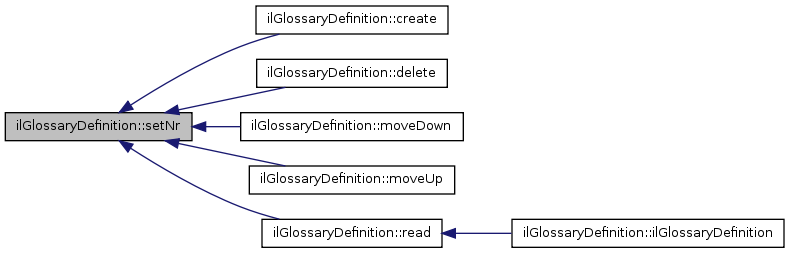 Here is the caller graph for this function:| ilGlossaryDefinition::setNr | ( | $ | a_nr | ) |
