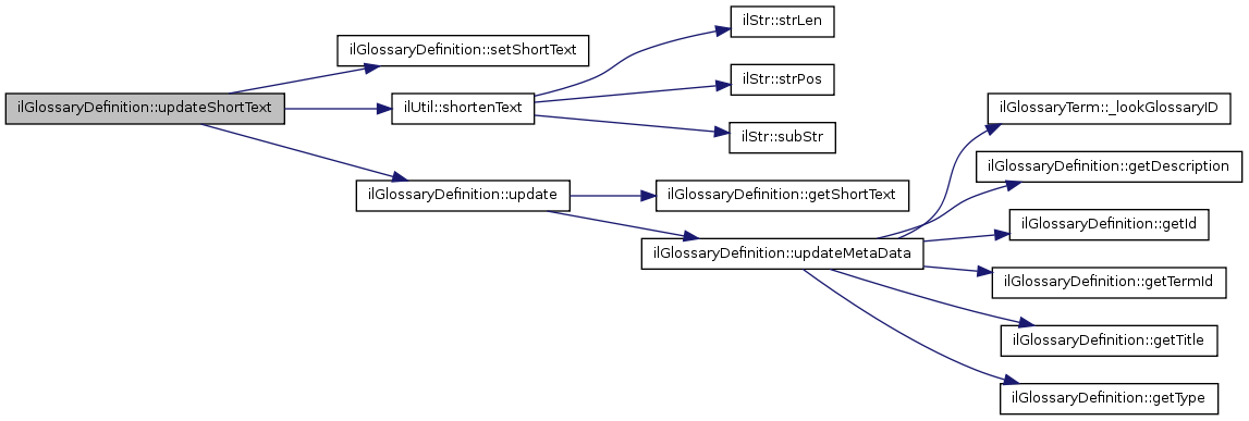 Here is the caller graph for this function:| ilGlossaryDefinition::updateShortText | ( | ) |