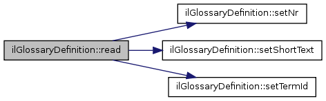 Here is the call graph for this function:| ilGlossaryDefinition::read | ( | ) |