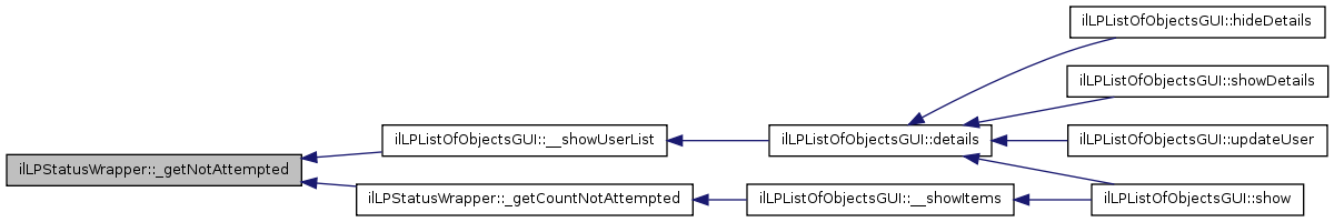 Here is the caller graph for this function:| ilLPStatusWrapper::_getCountNotAttempted | ( | $ | a_obj_id | ) |