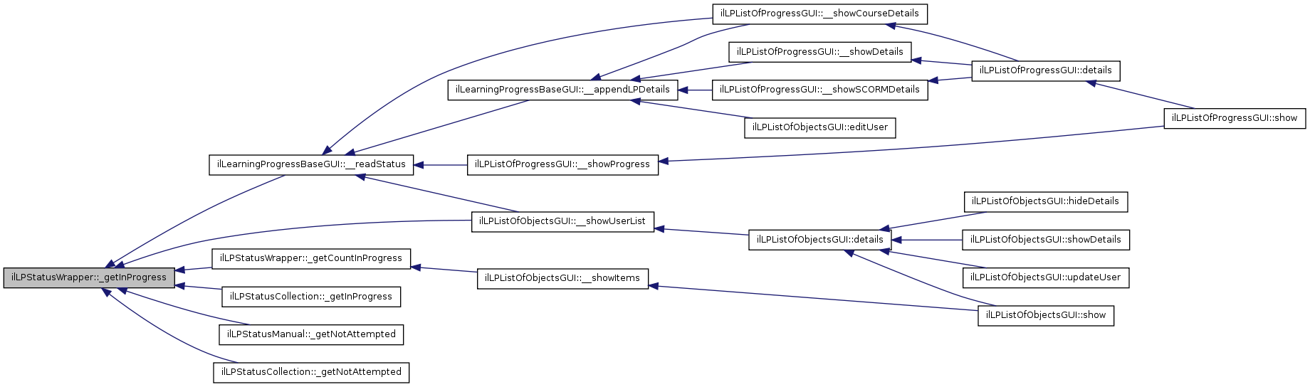 Here is the caller graph for this function:| ilLPStatusWrapper::_getCountInProgress | ( | $ | a_obj_id | ) |