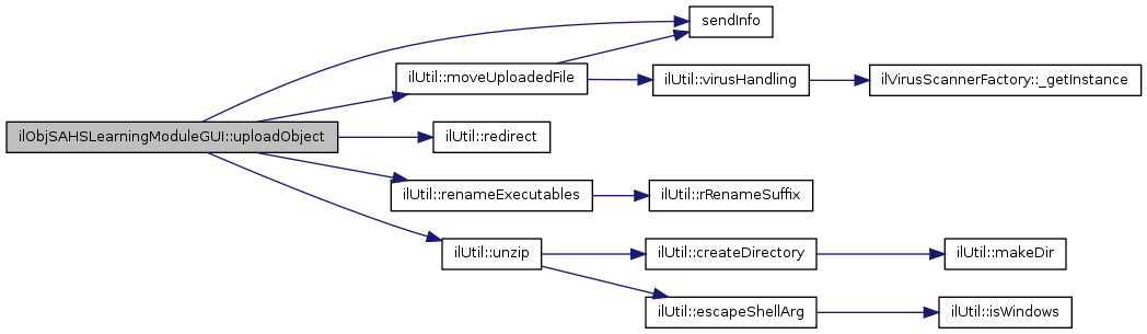 Here is the call graph for this function:| ilObjSAHSLearningModuleGUI::uploadObject | ( | ) |