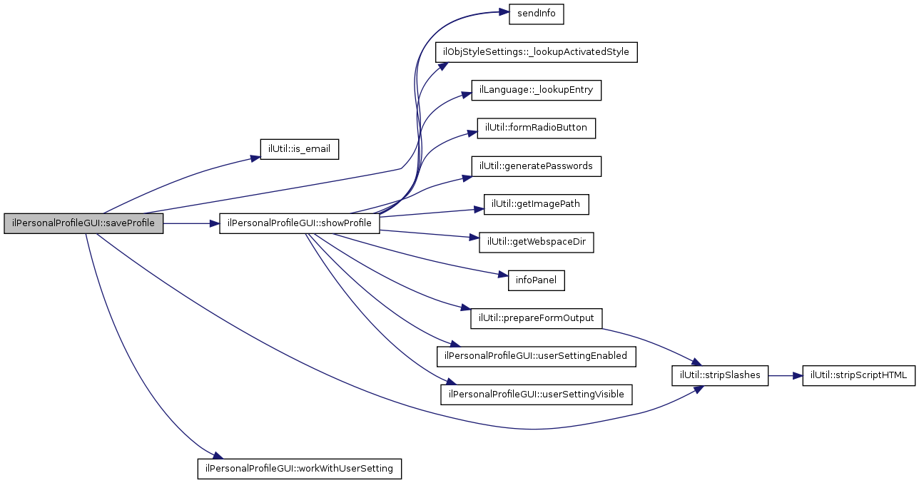 Here is the call graph for this function:| ilPersonalProfileGUI::saveProfile | ( | ) |
