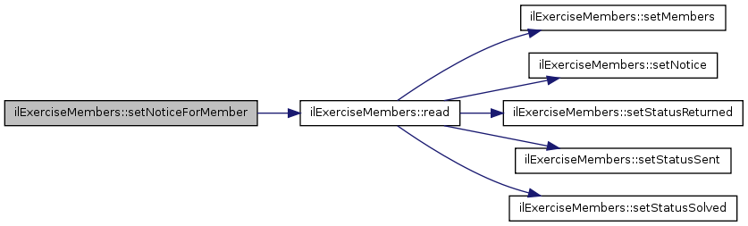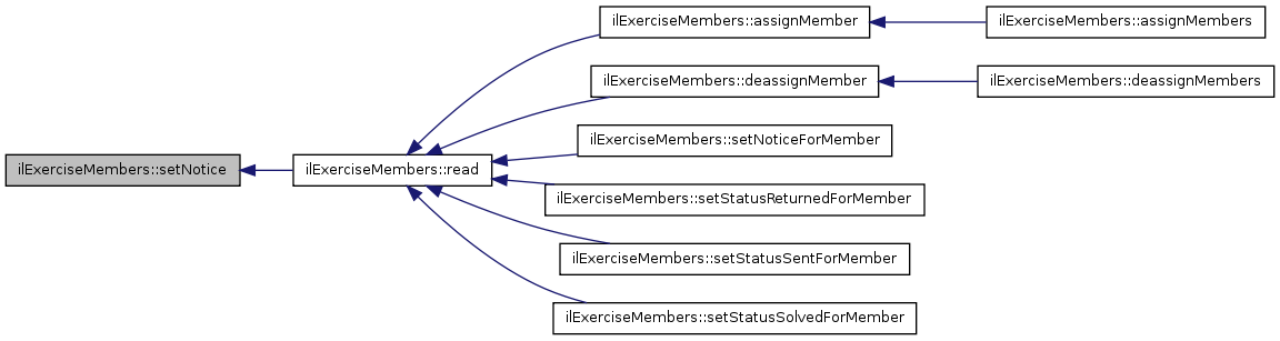 Here is the caller graph for this function:| ilExerciseMembers::setNotice | ( | $ | a_notice | ) |
