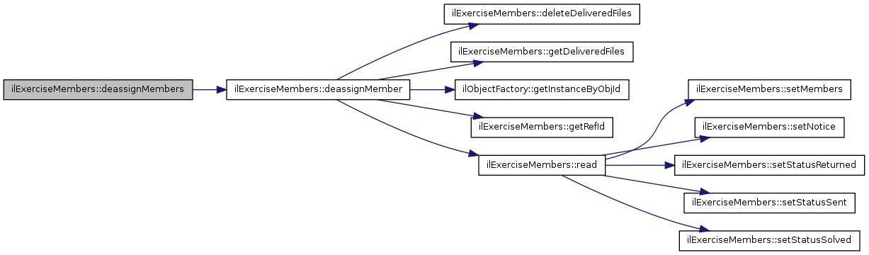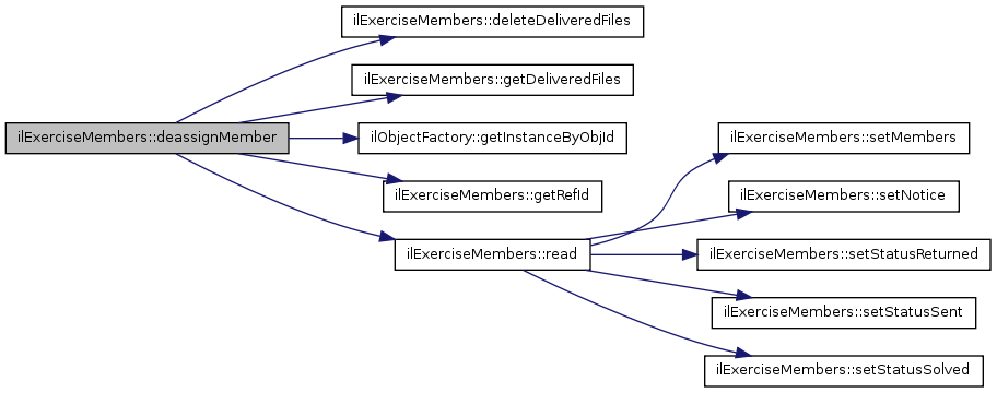 Here is the call graph for this function:| ilExerciseMembers::deassignMember | ( | $ | a_usr_id | ) |