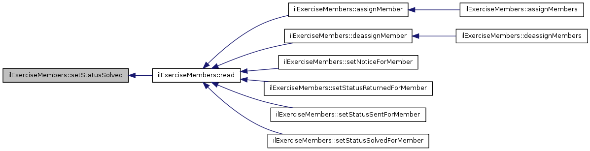 Here is the caller graph for this function:| ilExerciseMembers::setStatusSolvedForMember | ( | $ | a_member_id, | |
