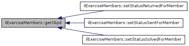 Here is the call graph for this function:| ilExerciseMembers::setObjId | ( | $ | a_obj_id | ) |