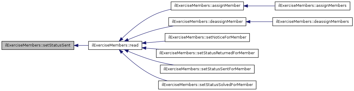 Here is the caller graph for this function:| ilExerciseMembers::setStatusSentForMember | ( | $ | a_member_id, | |