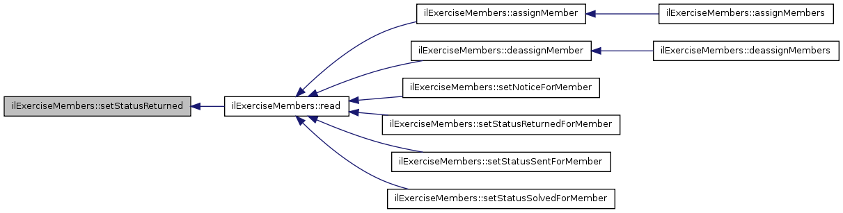 Here is the caller graph for this function:| ilExerciseMembers::setStatusReturnedForMember | ( | $ | a_member_id, | |