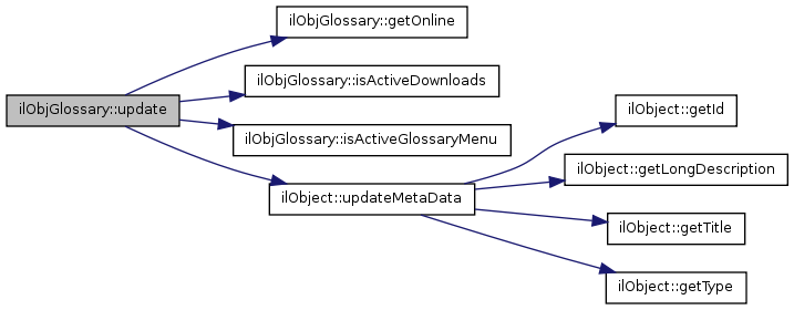 Here is the caller graph for this function:| ilObjGlossary::update | ( | ) |