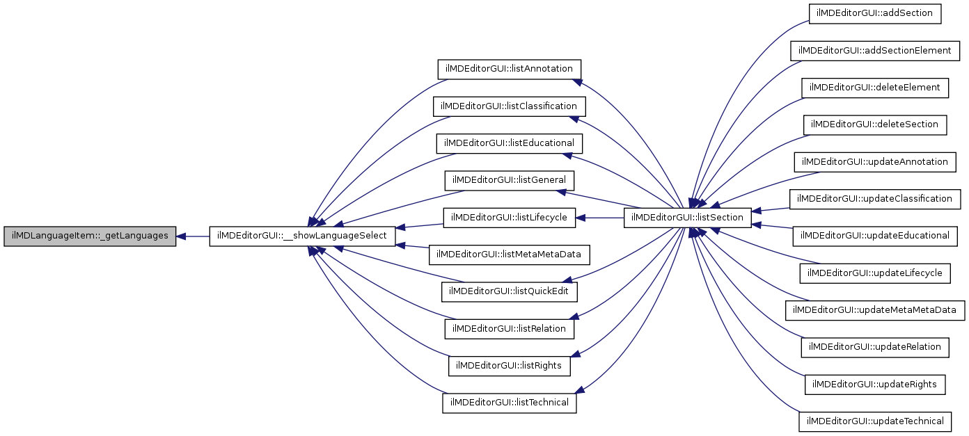 Here is the caller graph for this function:| ilMDLanguageItem::_getLanguages | ( | ) |