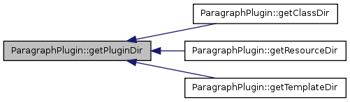 Here is the call graph for this function:| ParagraphPlugin::getPluginDir | ( | ) |