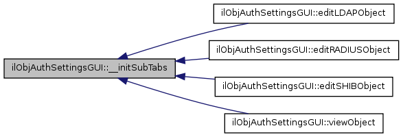 | ilObjAuthSettingsGUI::__initSubTabs | ( | $ | a_cmd | ) |