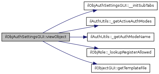 Here is the call graph for this function:| ilObjAuthSettingsGUI::viewObject | ( | ) |
