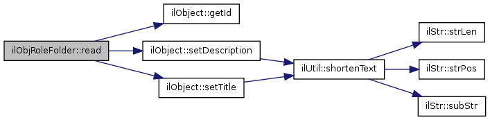 Here is the call graph for this function:| ilObjRoleFolder::read | ( | $ | a_force_db = false |