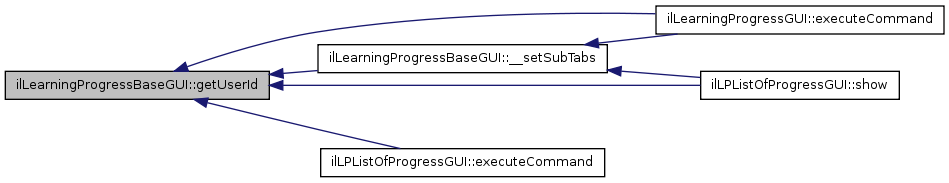 Here is the caller graph for this function:| ilLearningProgressBaseGUI::getUserId | ( | ) |