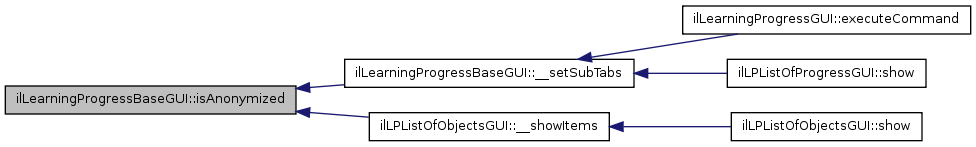 Here is the caller graph for this function:| ilLearningProgressBaseGUI::isAnonymized | ( | ) |