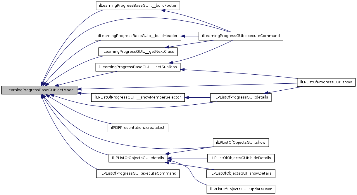 Here is the caller graph for this function:| ilLearningProgressBaseGUI::getMode | ( | ) |