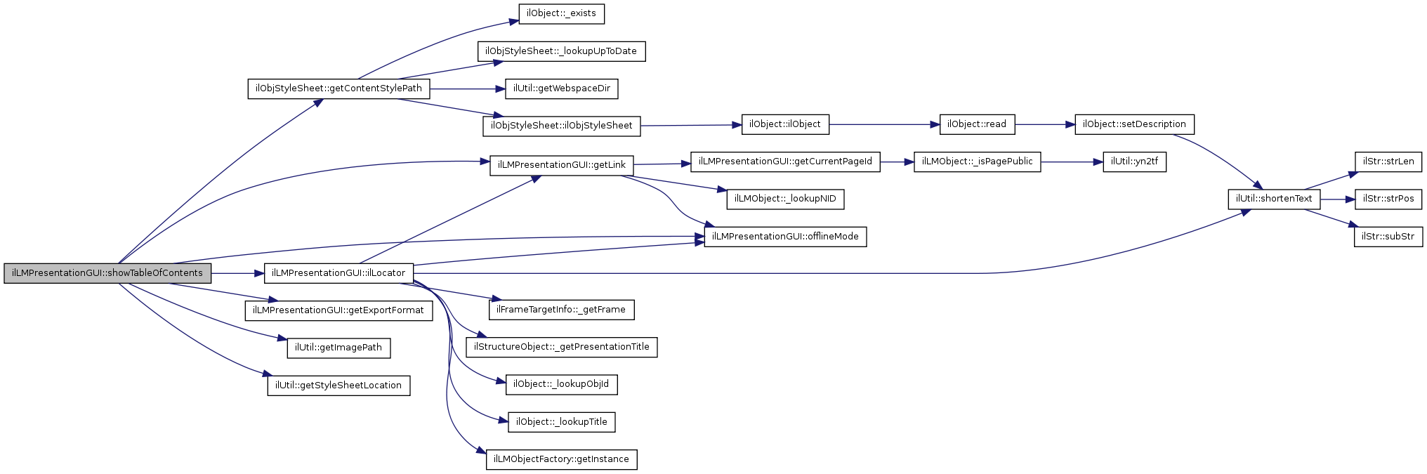 Here is the call graph for this function:| ilLMPresentationGUI::showTableOfContents | ( | ) |