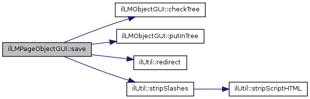 Here is the call graph for this function:| ilLMPageObjectGUI::save | ( | ) |