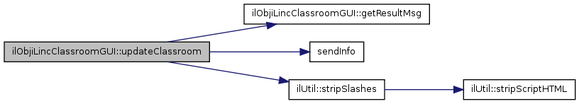 Here is the call graph for this function:| ilObjiLincClassroomGUI::updateClassroom | ( | ) |