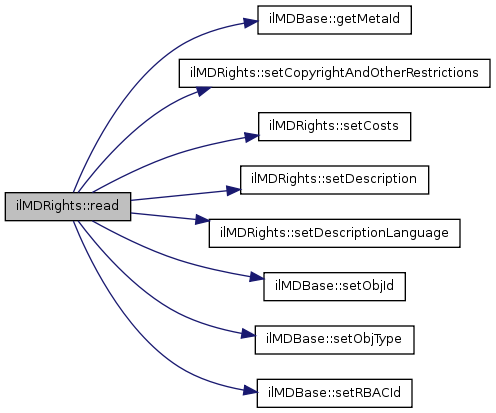 Here is the call graph for this function:| ilMDRights::read | ( | ) |