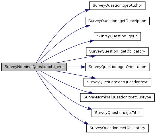 Here is the call graph for this function:| SurveyNominalQuestion::to_xml | ( | $ | a_include_header = true, |