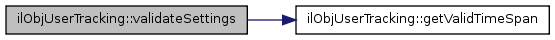 Here is the call graph for this function:| ilObjUserTracking::validateSettings | ( | ) |