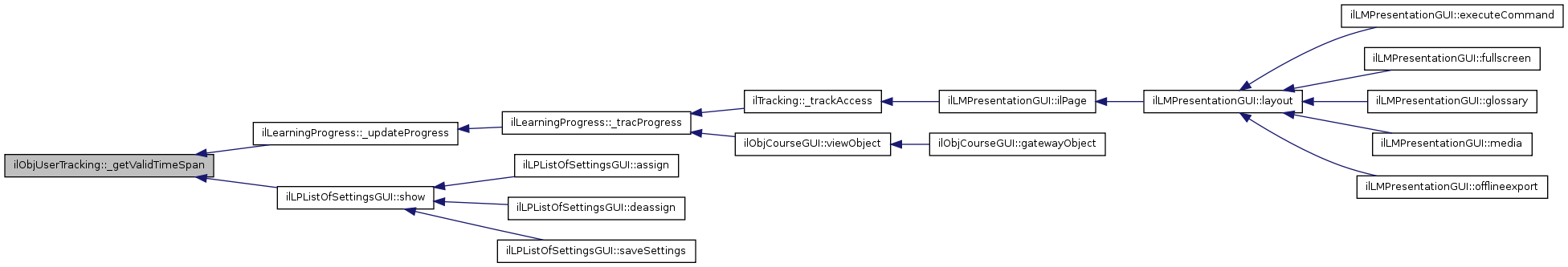 Here is the caller graph for this function:| ilObjUserTracking::_getValidTimeSpan | ( | ) |