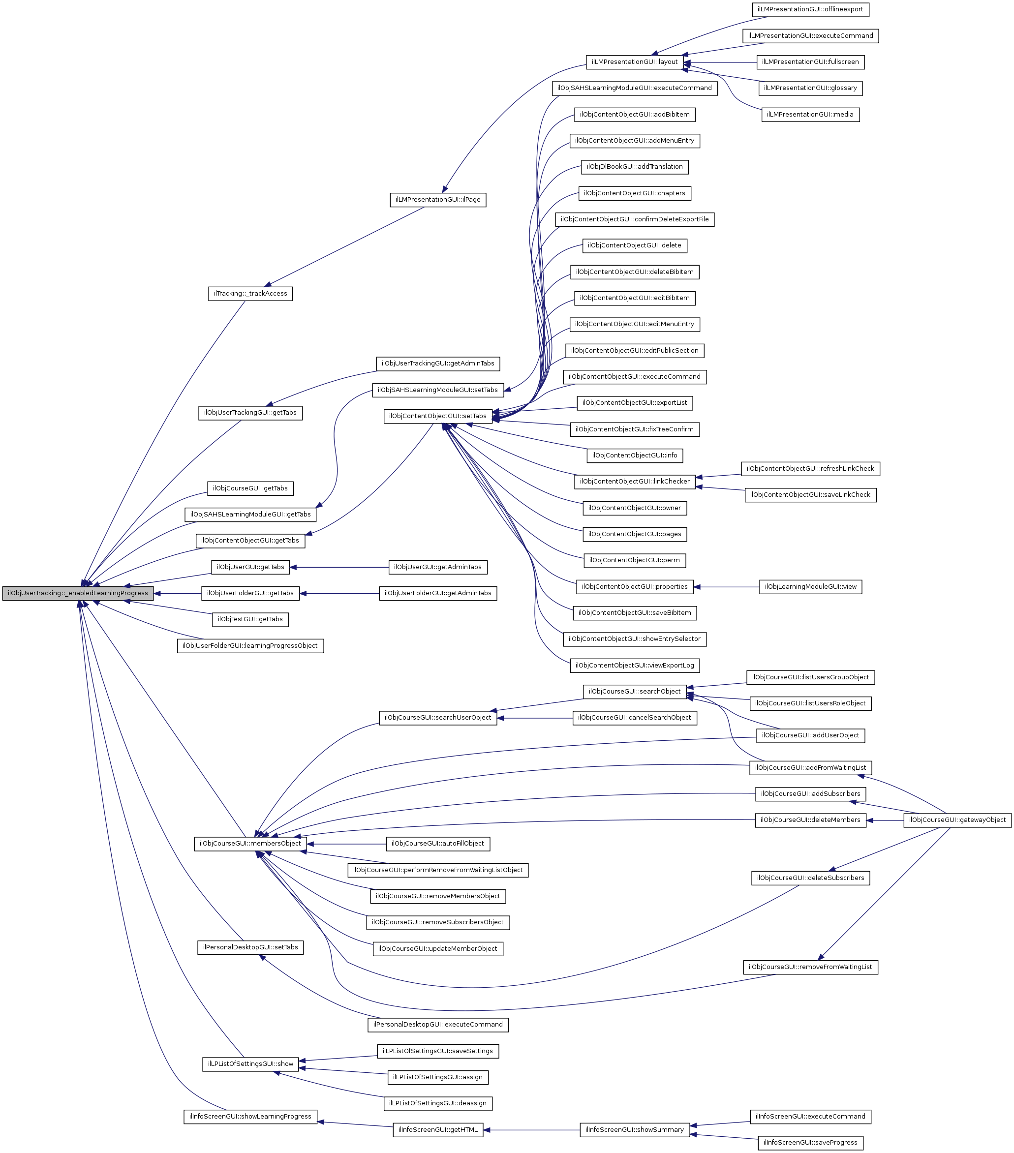 Here is the caller graph for this function:| ilObjUserTracking::_enabledLearningProgress | ( | ) |