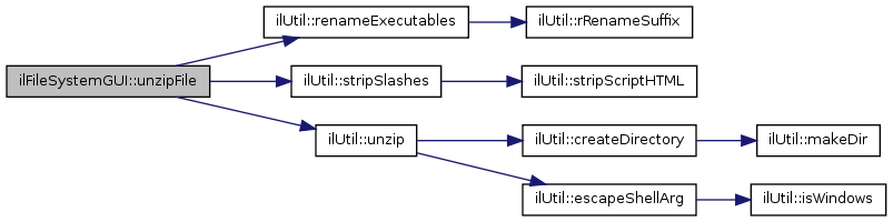 Here is the call graph for this function:| ilFileSystemGUI::unzipFile | ( | ) |