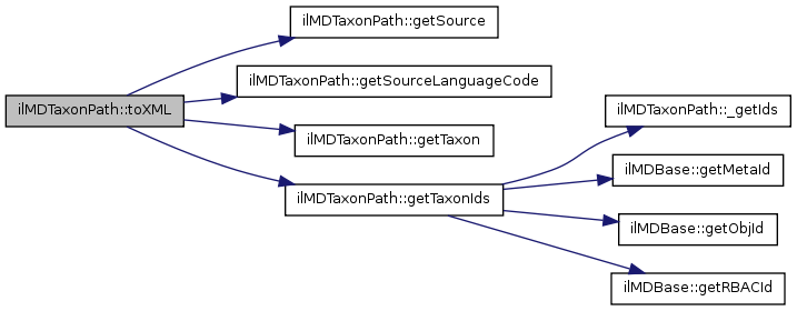 Here is the call graph for this function:| ilMDTaxonPath::toXML | ( | &$ | writer | ) |