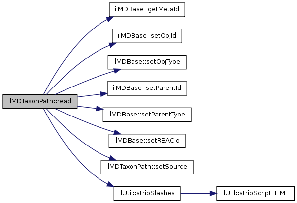 Here is the call graph for this function:| ilMDTaxonPath::read | ( | ) |