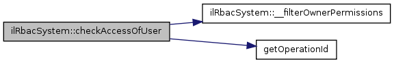 Here is the call graph for this function:| ilRbacSystem::checkAccessOfUser | ( | $ | a_user_id, | |